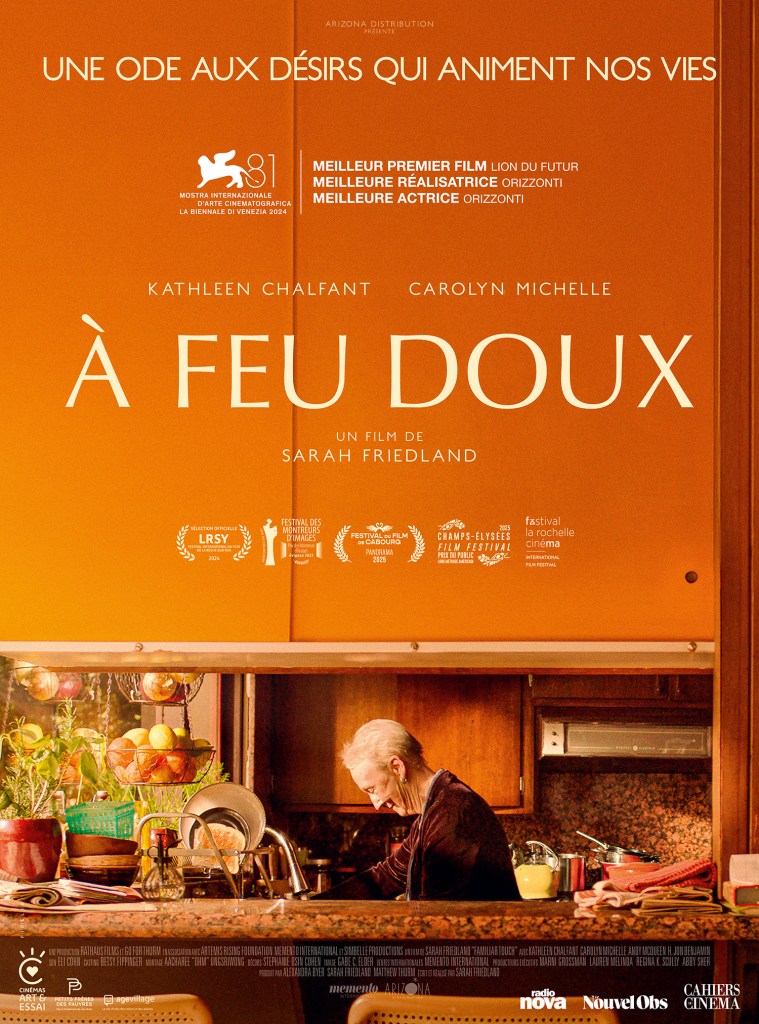 À feu doux est le premier long métrage de la réalisatrice new-yorkaise Sarah Friedland, révélée lors de la Mostra de Venise en 2024, où le film a reçu plusieurs distinctions majeures : le Lion du futur (meilleur premier film), le prix de la meilleure réalisation et celui de la meilleure interprétation féminine pour Kathleen Chalfant.